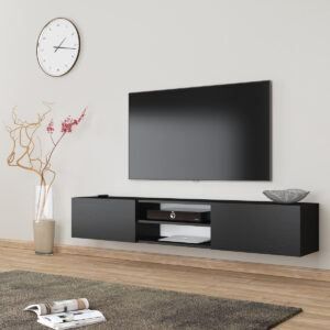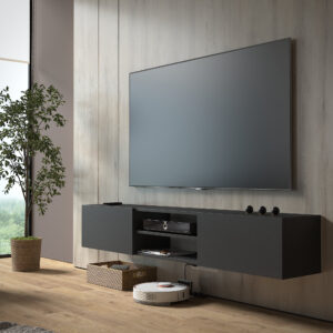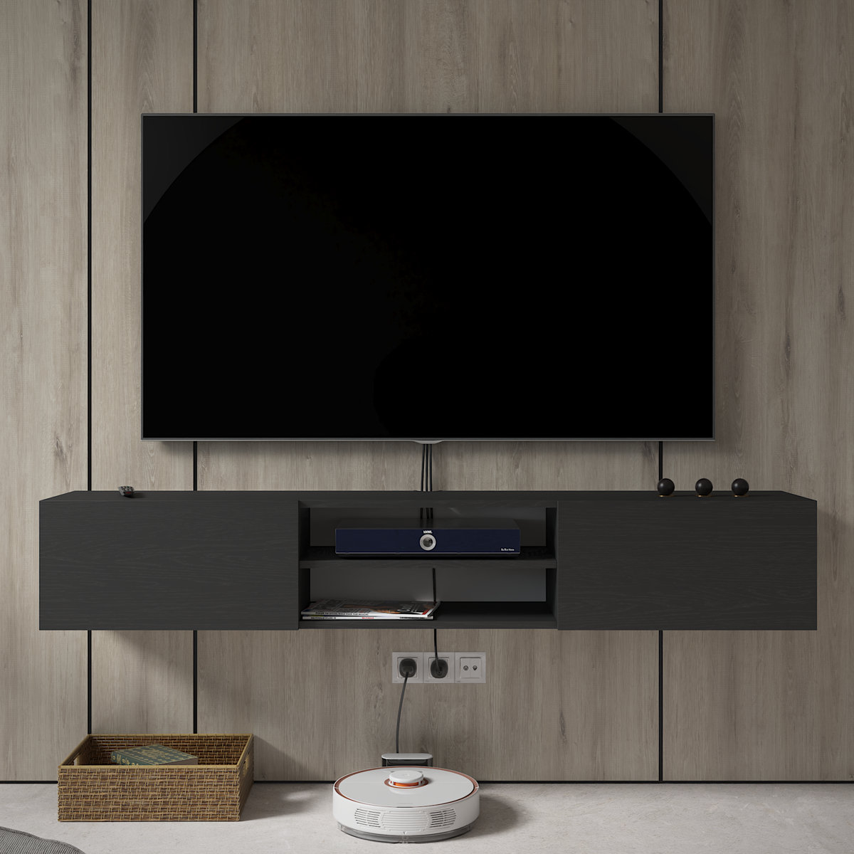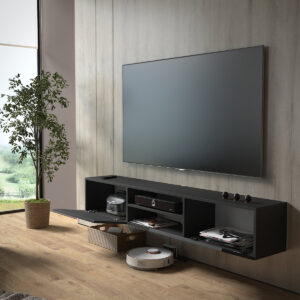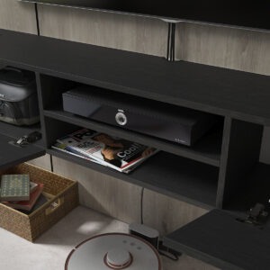 ✔ Smart Storage Layout – Hidden compartments keep clutter out of sight while open shelves display décor or house your soundbar.