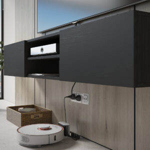 Crafted for TVs up to 80″, LuxeWall combines minimalist styling with smart functionality—freeing up valuable floor space, enhancing airflow around your electronics, and giving any living room a brighter, clutter-free feel.